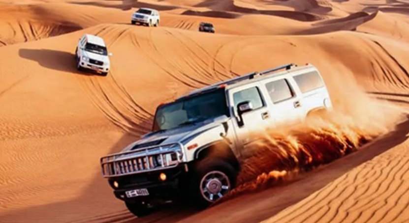You can explore the splendor of the desert on a thrilling Hummer safari. You will be picked up from your accommodation by your driving guide, who will then drive you to the desert in a luxurious Hummer jeep. You'll be spending the night in the desert. When you arrive in the desert, you'll first take an exhilarating dune ride across the massive dunes. After the dose of adrenaline wears off, you'll feel renewed and prepared to tackle the intriguing journey. Visit a camel farm to pet and see these gentle giants of the desert in their natural environment. After continuing to drive over the dunes, halt at one of the dunes' peaks to witness the mesmerizing desert sunset.